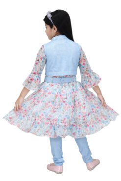 Stylish Girls Floral Dress with Denim Jacket and Belt – Party Wear