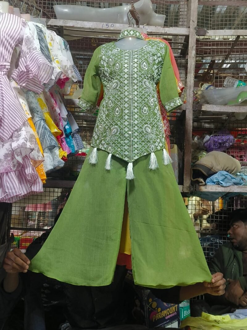 Be the first to review “Girls kids Lehenga Green color paint top set ambotary work” Cancel reply