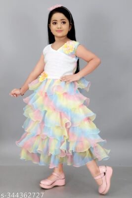 Introduce a touch of whimsical charm to your child’s wardrobe with our Girls Light Multicolor Party Wear Gown Frock. Crafted from high-quality polyester fabric, this enchanting dress features a beautiful light multicolor pattern and a knee-length cut that exudes elegance. The dress boasts a delightful printed design and a round neck, paired with a sleeveless style for ultimate comfort. The gown is designed with a convenient zipper closure, ensuring easy wear. Perfect for parties and special occasions, this gown is available in sizes 4 to 10 years, making it the ideal choice for your little girl’s new dress collection.