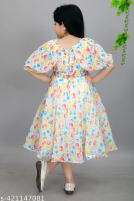 Brighten up your child’s wardrobe with our beautiful Girls Printed Chiffon Frock. This charming dress features a playful multicolored print on a white background, perfect for casual wear. The frock has a round neck and short sleeves, designed for comfort and style. The pleated or gathered skirt adds a touch of elegance, making it suitable for various occasions. The back zip opener ensures easy wear. Available in sizes 4 to 10 years, this affordable dress is a delightful addition to any girl’s collection.