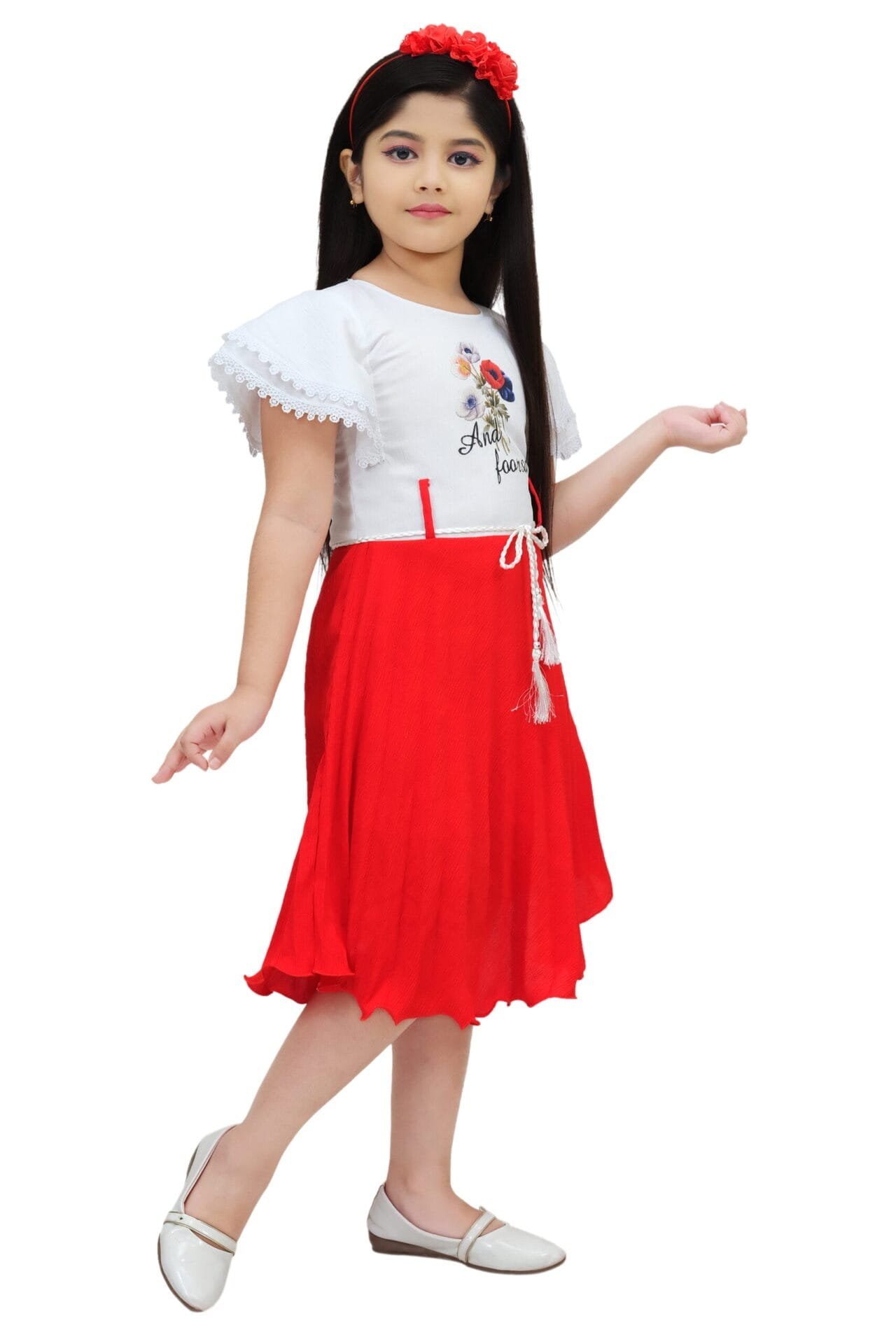 Add a touch of elegance to your child’s wardrobe with our Girls red Party Wear Frock. This stunning dress features a beautiful red color, crafted from high-quality chiffon fabric. The fit and flare design, combined with the knee-length cut and round neck, makes it perfect for parties and special occasions. The frock showcases a lovely printed pattern and short sleeves for added comfort. Available in sizes 4 to 11 years, this dress is a versatile addition to your child’s collection, ensuring they look their best at any event.