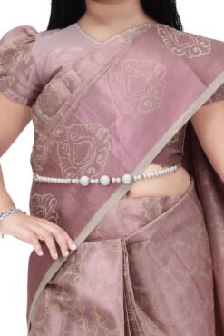Girls Banarasi Silk Saree – Pink Traditional Outfit with Pearl Belt