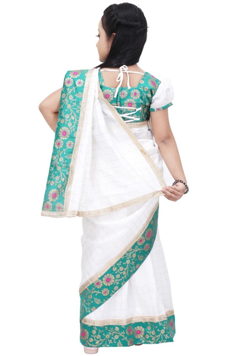 Kids Traditional White and Green Saree Dress