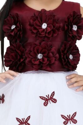 Add a touch of elegance to your child’s wardrobe with our Girls’ Long Net Frock. This stunning dress features a beautiful red and white color combination with intricate handwork and attached butterfly designs, making it perfect for weddings and special occasions. Crafted from high-quality net fabric, this sleeveless frock ensures comfort and style. The back zip opener makes it easy to wear. Available in sizes 4 to 10 years, this dress is an affordable and stylish choice for any party or celebration.
