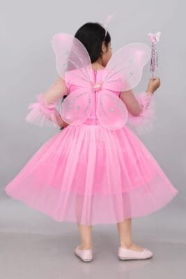 Enchant your little one with our Pari Frock Dress for Girls in a delightful pink color. This magical dress, crafted from premium net fabric, is perfect for special occasions, transforming your child into a fairy tale princess. The frock features a fit and flare design with a calf-length cut, and a classic round neck, combined with three-quarter sleeves for an elegant look. The surface is stylishly embellished, adding a touch of whimsy. This dress comes complete with a headband, fairy stick, and fairy wings, making it ideal for parties and themed events. Available in all sizes, this dress is the perfect addition to your child’s wardrobe