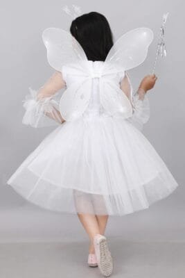 Transform your little one into a fairy tale princess with our Pari Frock Dress for Girls. This elegant white dress, crafted from high-quality net fabric, is perfect for special occasions. The frock features a fit and flare design, a calf-length cut, and a classic round neck, making it both stylish and comfortable. The three-quarter sleeves add a touch of grace, while the surface is beautifully embellished for a magical appearance. Complete with a headband, fairy stick, and fairy wings, this dress is perfect for parties and themed events. Available in all sizes, this dress is the perfect addition to your child’s wardrobe.