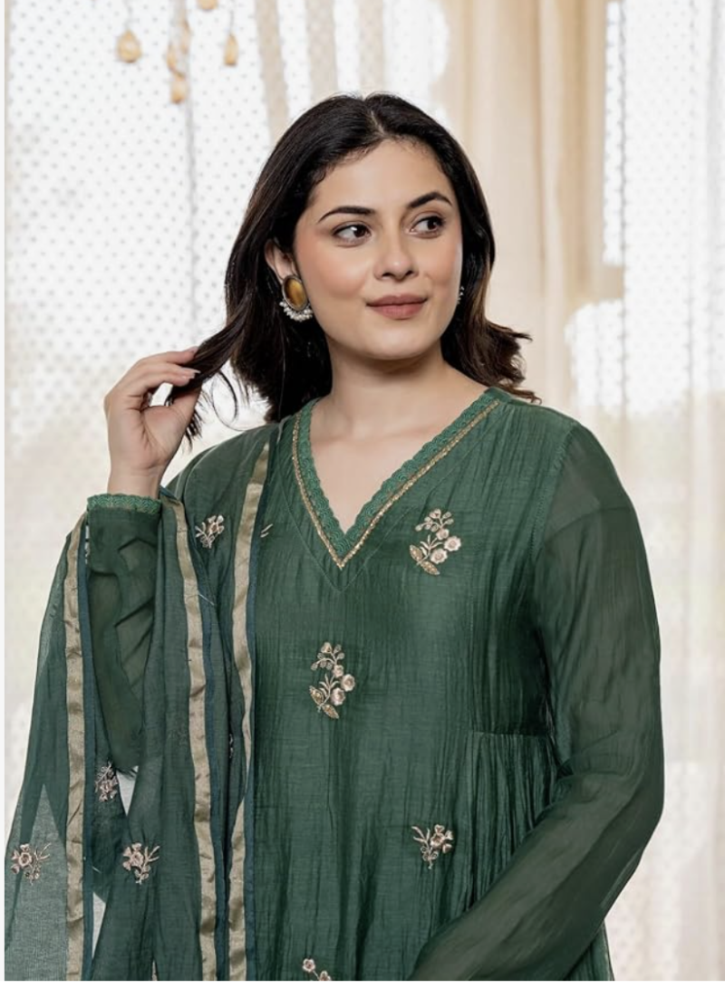 Women Embroidery Solid Anarkali Kurta and Pant Set with Dupatta